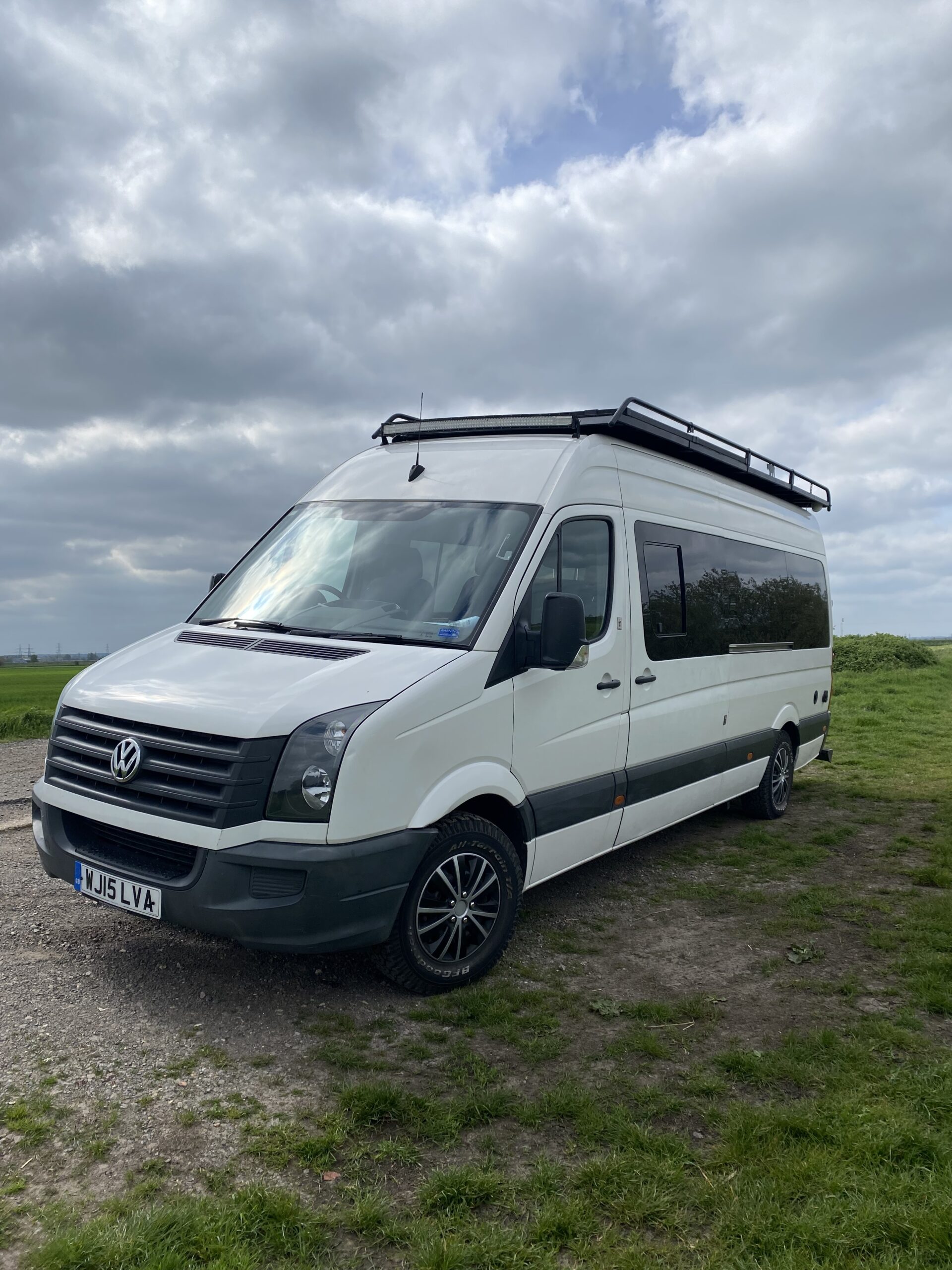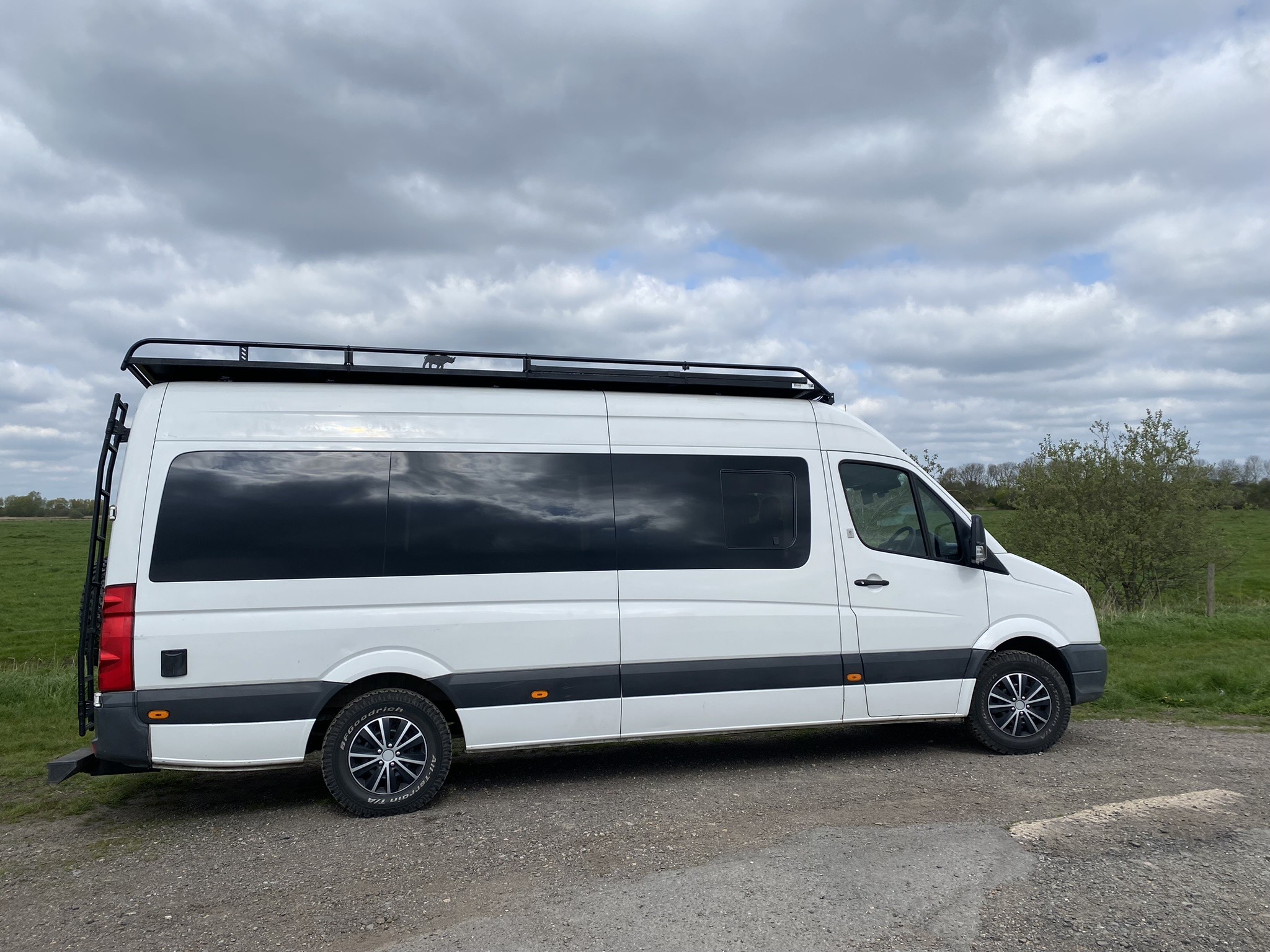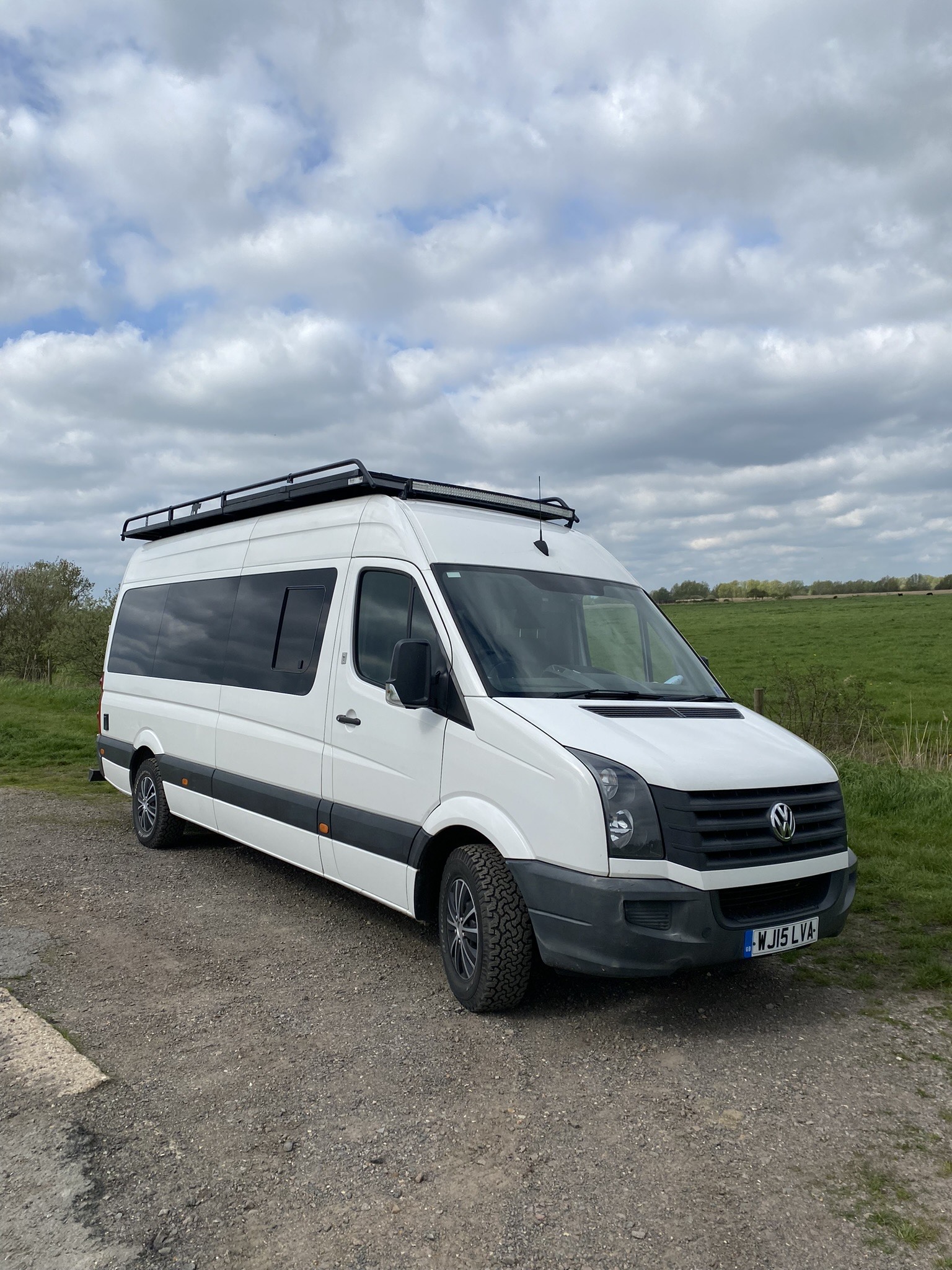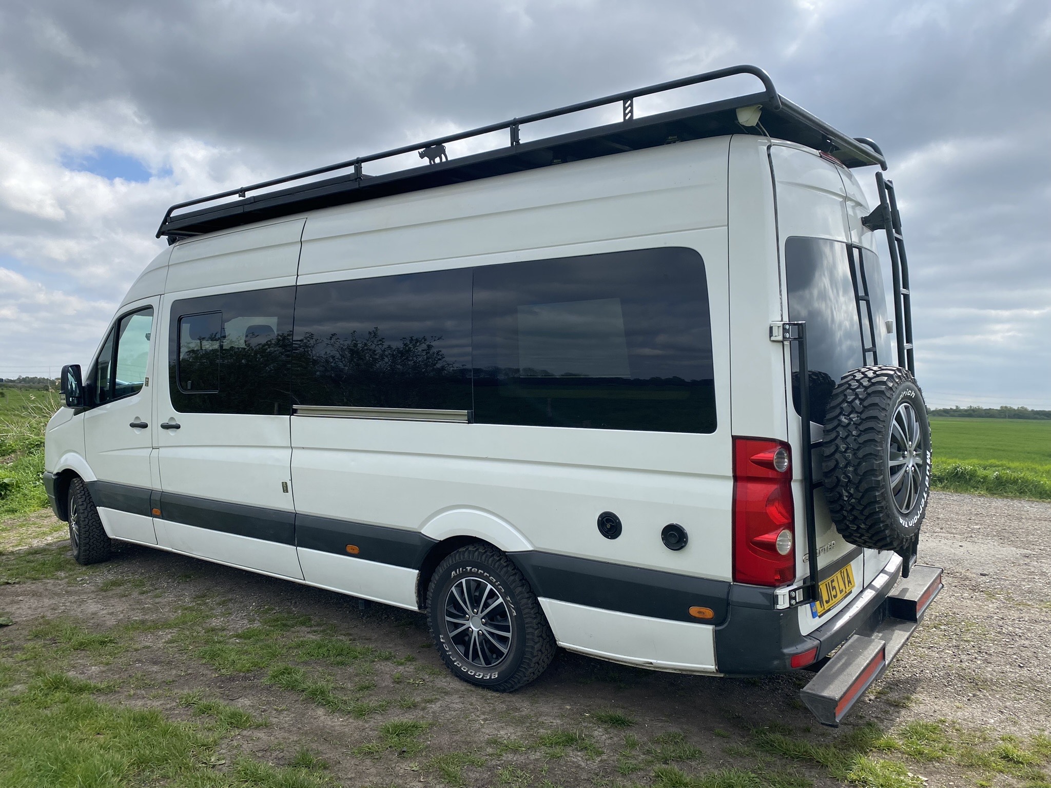 This Campervan is a 2015 LWV Volkswagen Crafter CR35 TDI with a manual transmission engine. The van has been newly fitted with off-road BF Goodrich All-Terrain T/A Tyres and a BF Goodrich Mud-Terrain Spare Tyre in case you need to get out of any particularly muddy and sticky situations!